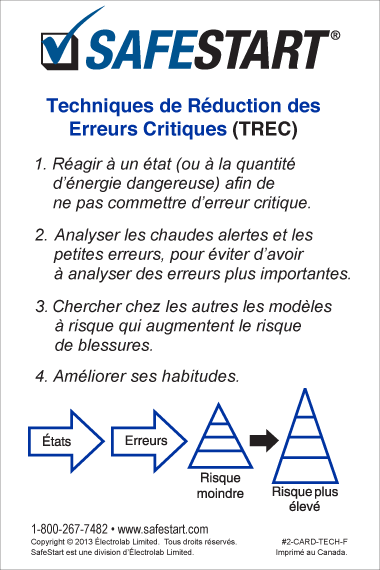 Mais rien n’est perdu! Même si nous continuons à faire des erreurs (la perfection n’est pas de ce monde!), c’est encore possible de prévoir « quand » et « où » nous sommes le plus susceptibles de faire des erreurs critiques et de les prévenir. Il nous faut simplement « réfl échir par anticipation ». Demandons-nous : « Si je pouvais gagner 1 000 $ en prédisant ma prochaine diffi culté, en termes d’erreur critique et d’énergie dangereuse – quand et où elle se produira? Qu’est-ce que je serai le plus vraisemblablement en train de faire? »