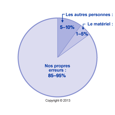 Pourtant, l’erreur faite par l’autre personne et résultant en une blessure pour nous, ne représente pas la tranche la plus importante du total des blessures. Ce sont les erreurs critiques que NOUS faisons qui représentent le pourcentage le plus important des blessures. (Voir diagramme ci-dessous)
