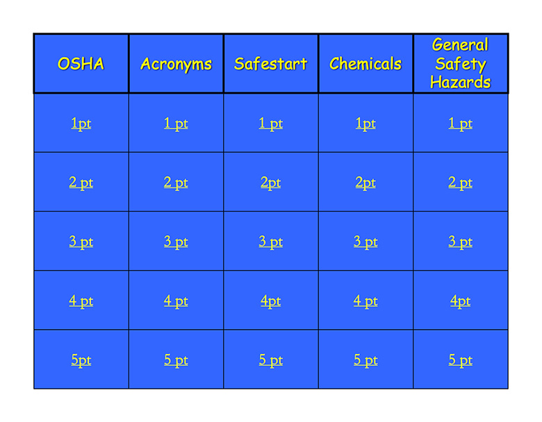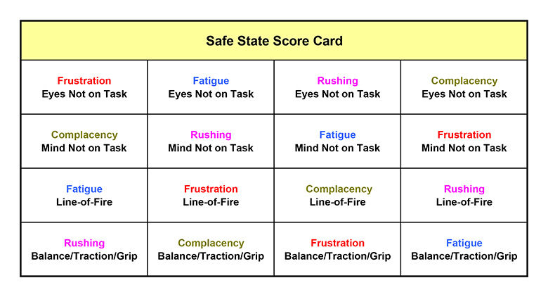 SafeStart BINGO score card