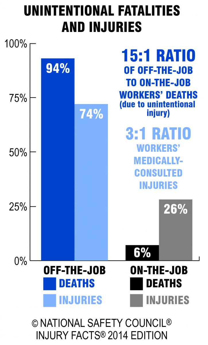 That’s why three times more injuries and 15 times more deaths occur off-the-job than on-the-job due to unintentional incidents.